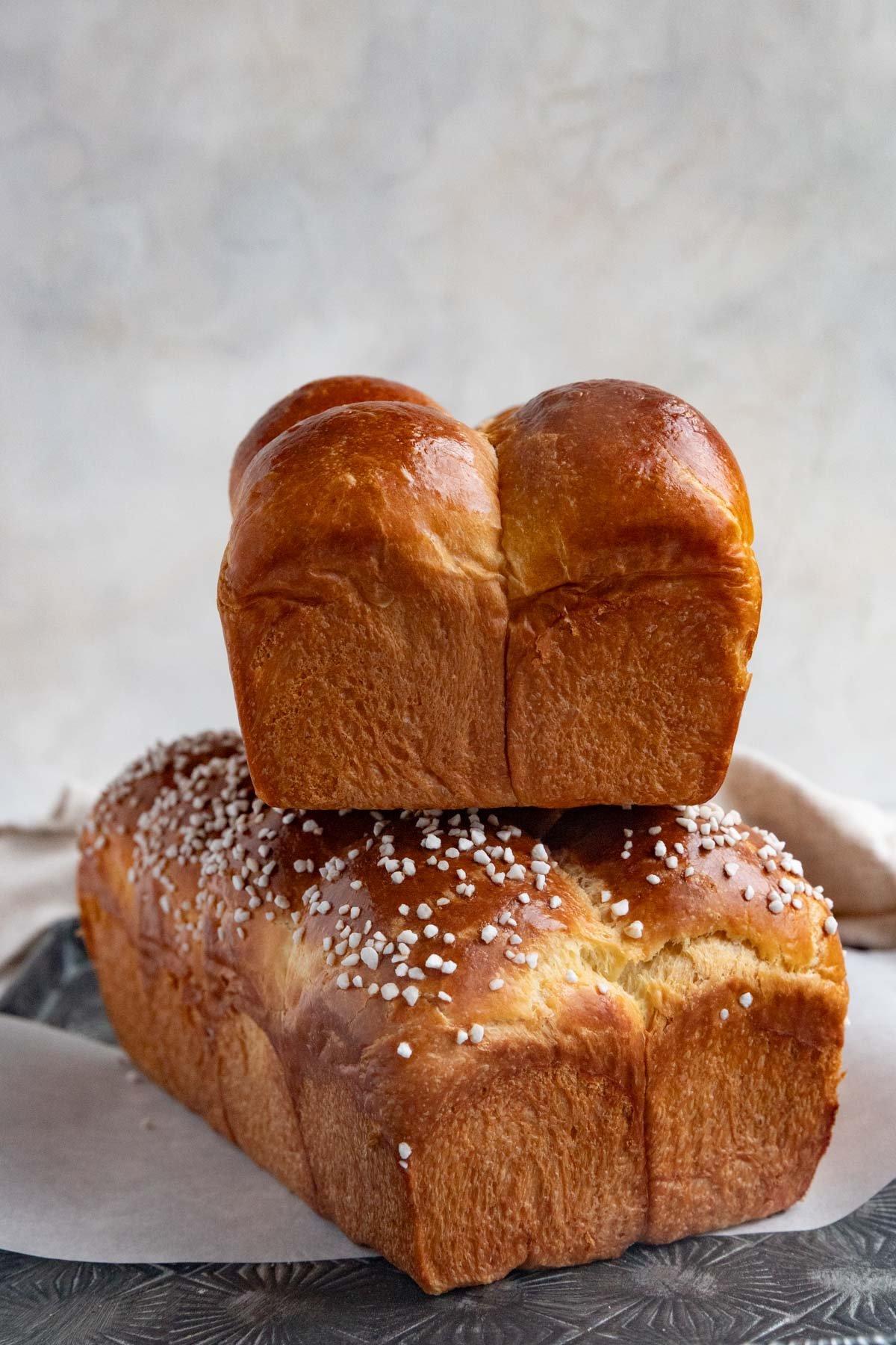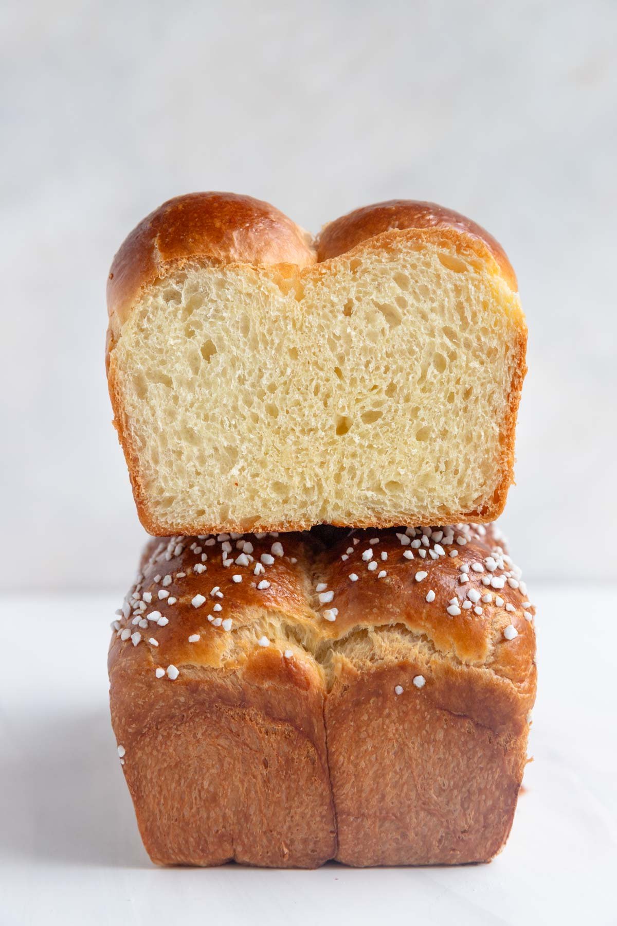 The rich, buttery taste and soft pillowy texture of brioche bread is what first pulled me in, but it’s the science that keeps me intrigued. How can so many eggs and so much butter go into one dough, and still bake into something so light? I added this recipe to the blog because I want to share that joy with you. Watching these loaves proof and then rise again in the oven never gets old. Every time it works, it feels like a win.