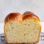 This delicious brioche loaf has a golden brown crust, a tender buttery crumb, and a rich flavor that comes from plenty of eggs, real butter, and an overnight rest. If you haven’t made brioche bread before, I recommend starting with my How to Make Brioche Dough guide where I walk through the mixing, kneading, and windowpane test in more detail. This post is all about shaping and baking the dough into a beautiful loaf.