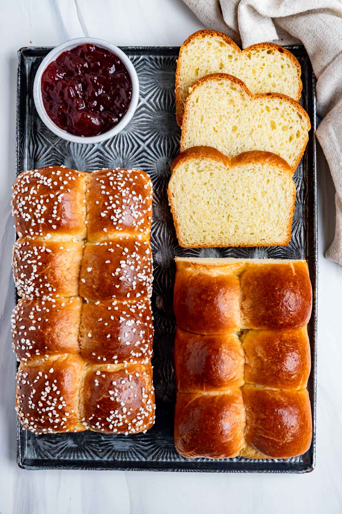 The brioche is buttery and tastes great all by itself especially when it's still warm from the oven. But it does tastes great with homemade strawberry jam or honey butter.